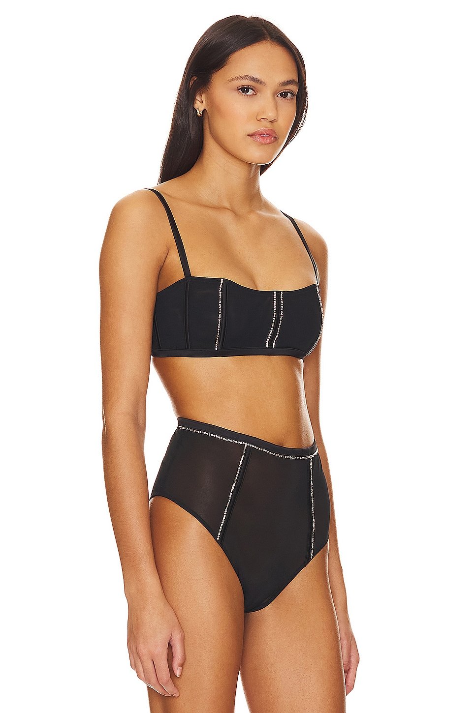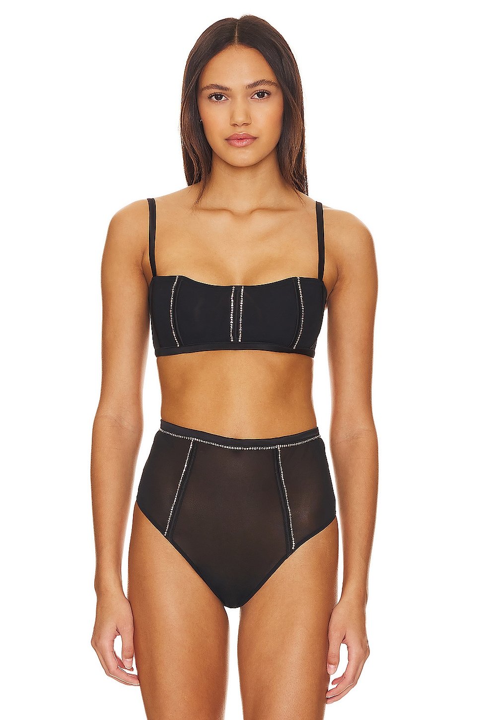 Mesh fabric with crystal embellished trim