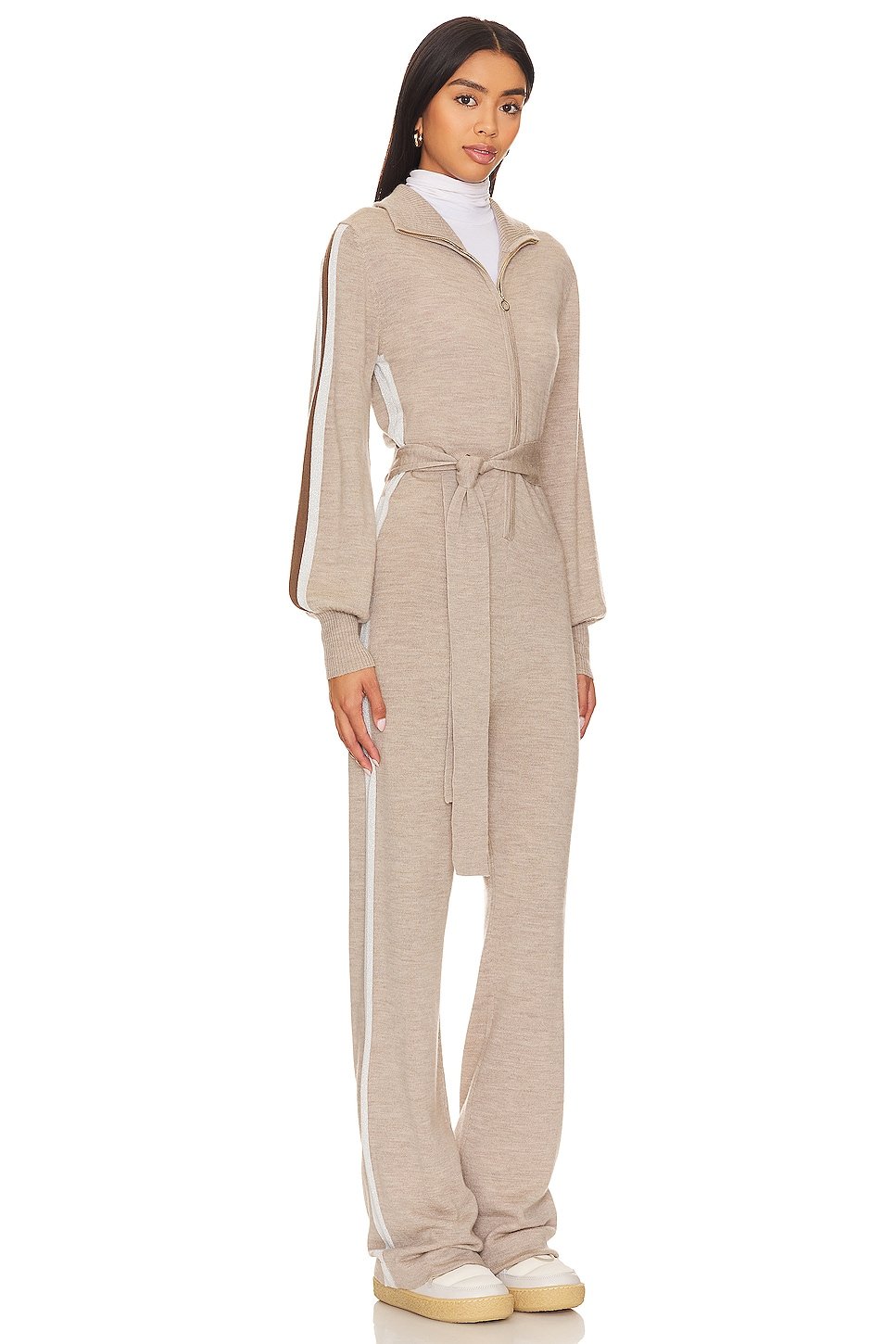 Knit fabric with knit waist tie and metallic trim