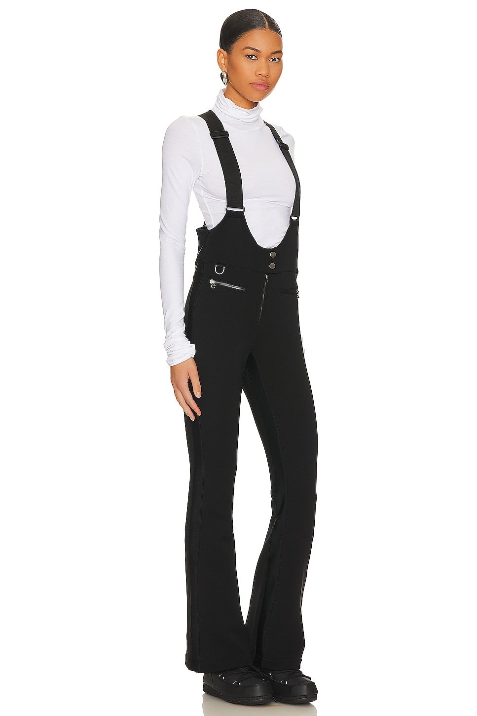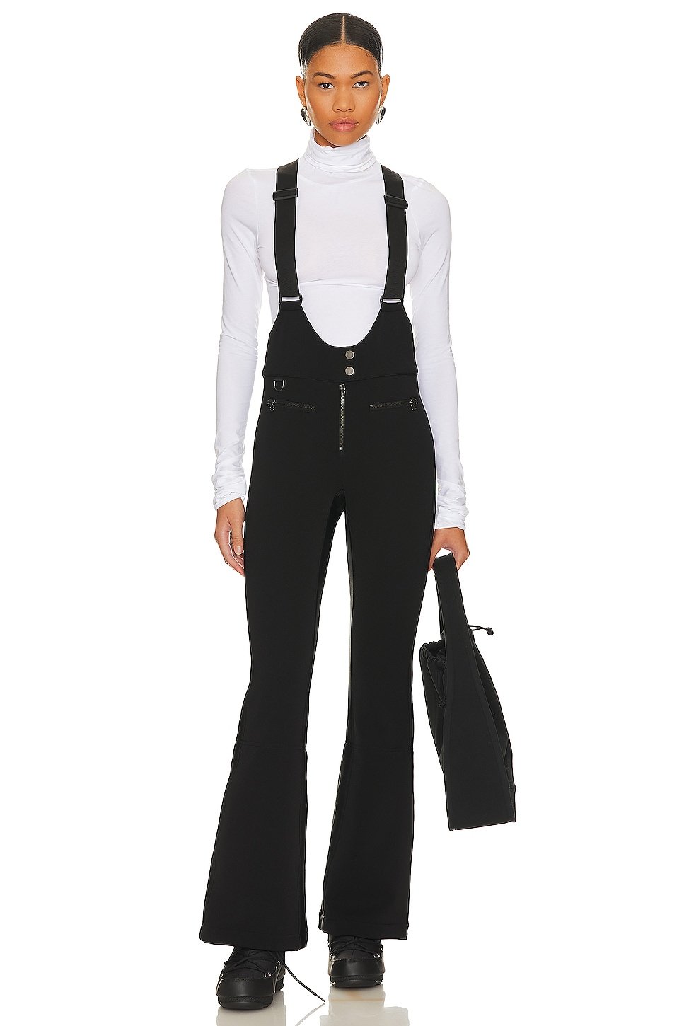 Neoprene fabric with fleece lining and attached snow catchers