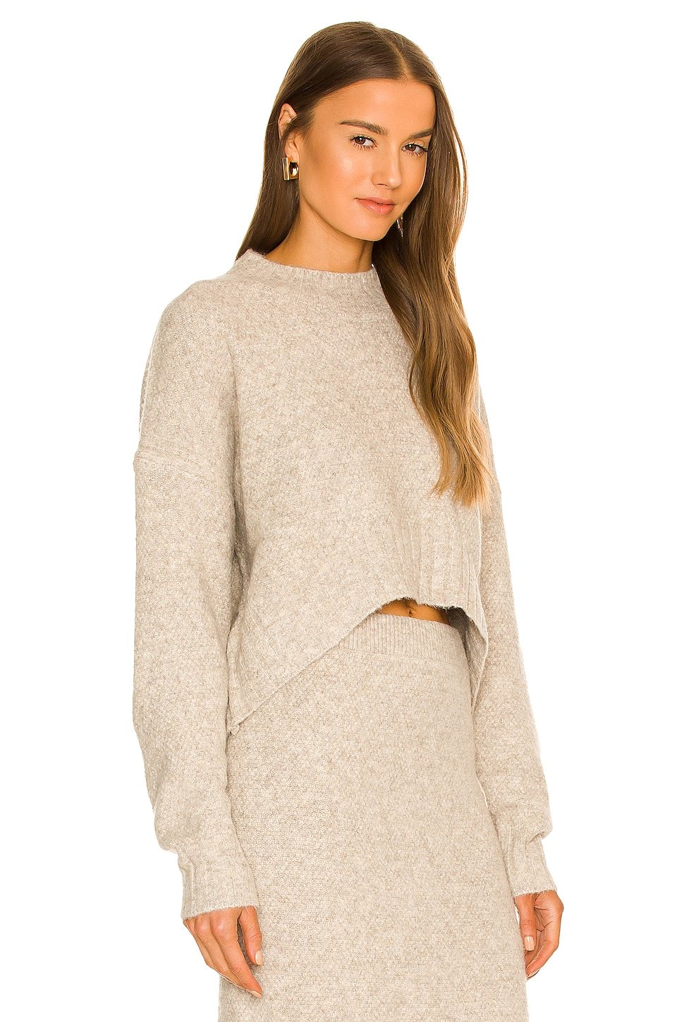 Brushed knit fabric with curved hem