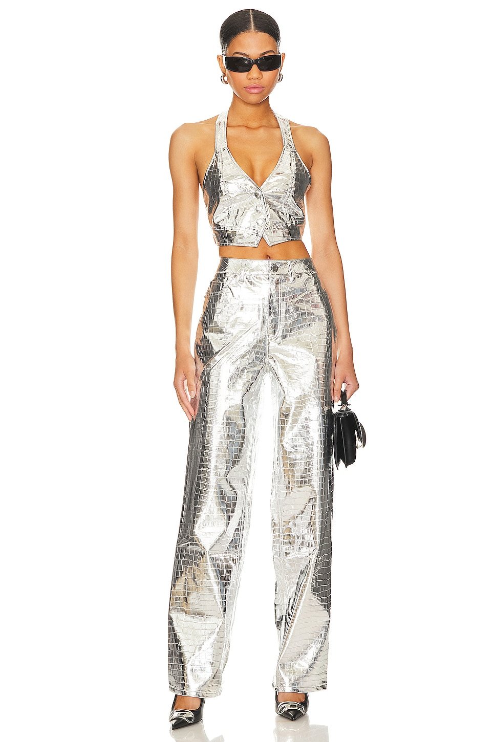 Embossed faux leather fabric with metallic finish