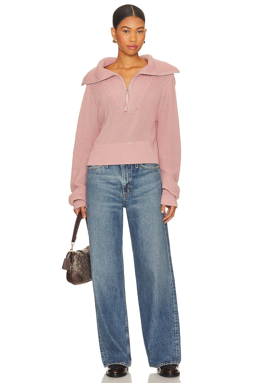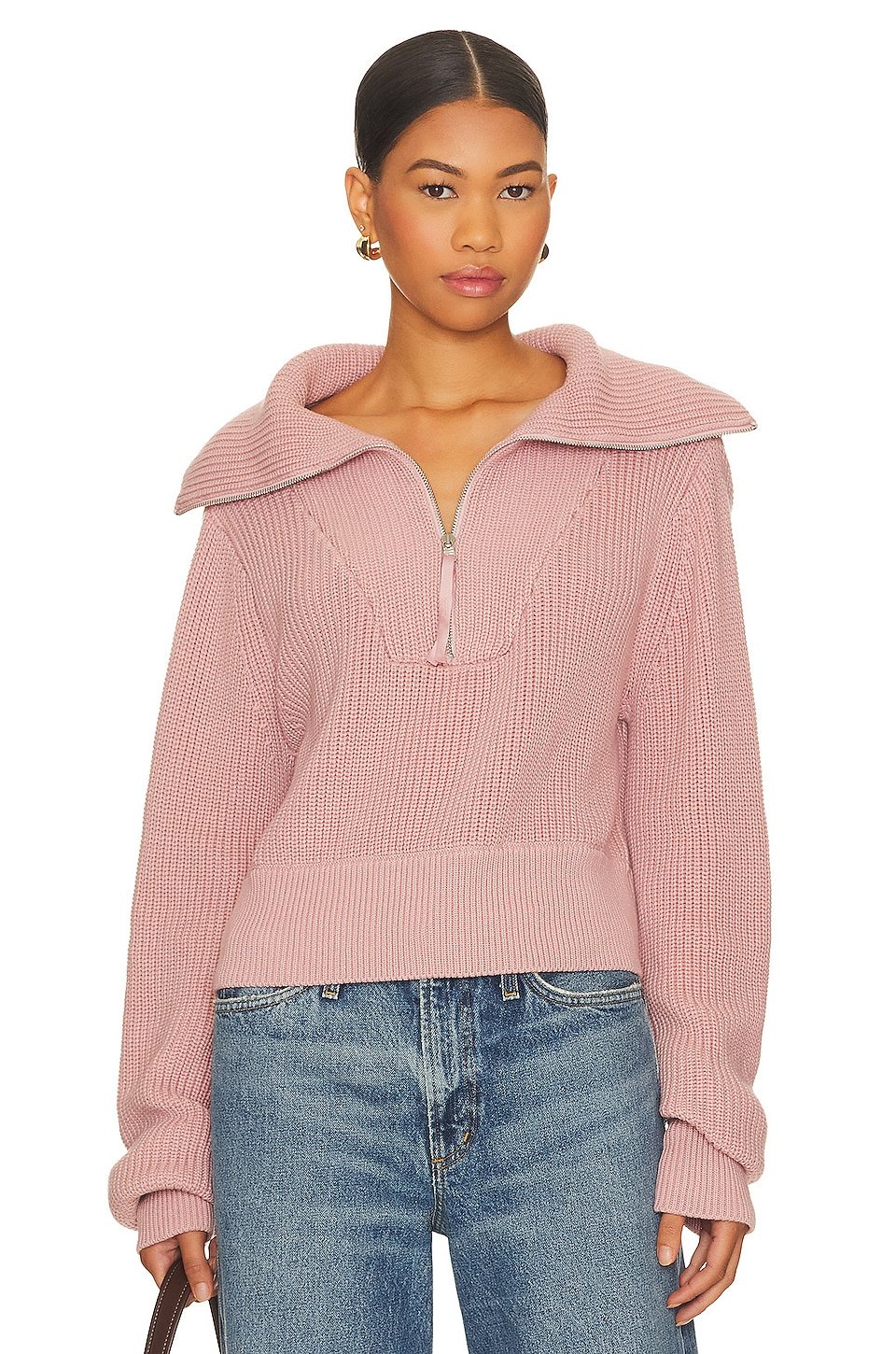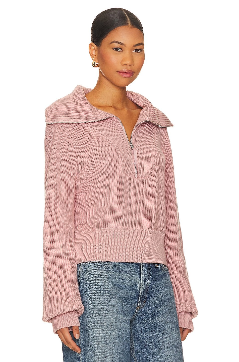 Partial front zipper closure with exaggerated collar