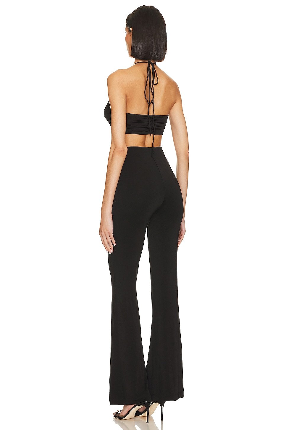 Pull-on halterneck styling with tie closure