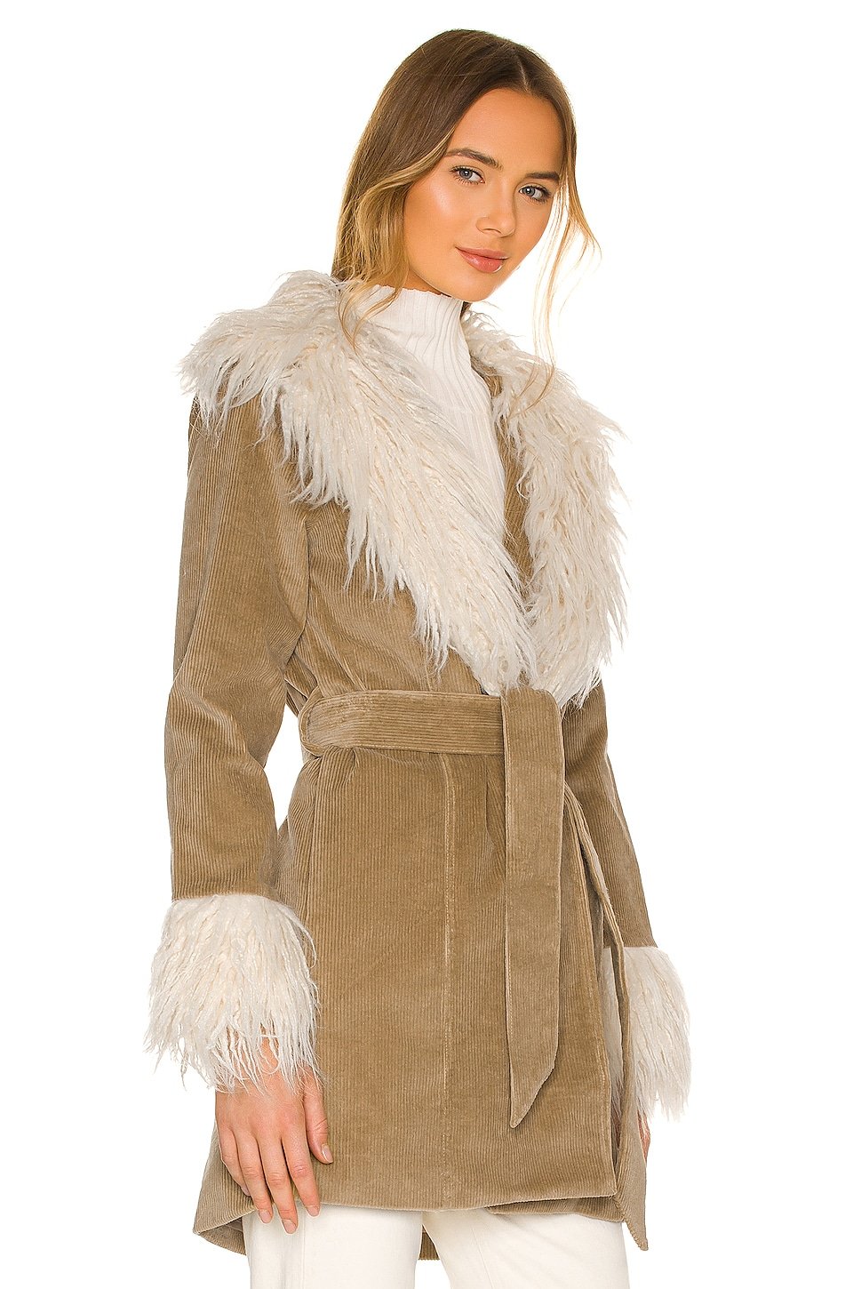 Corduroy fabric with faux fur collar and cuffs