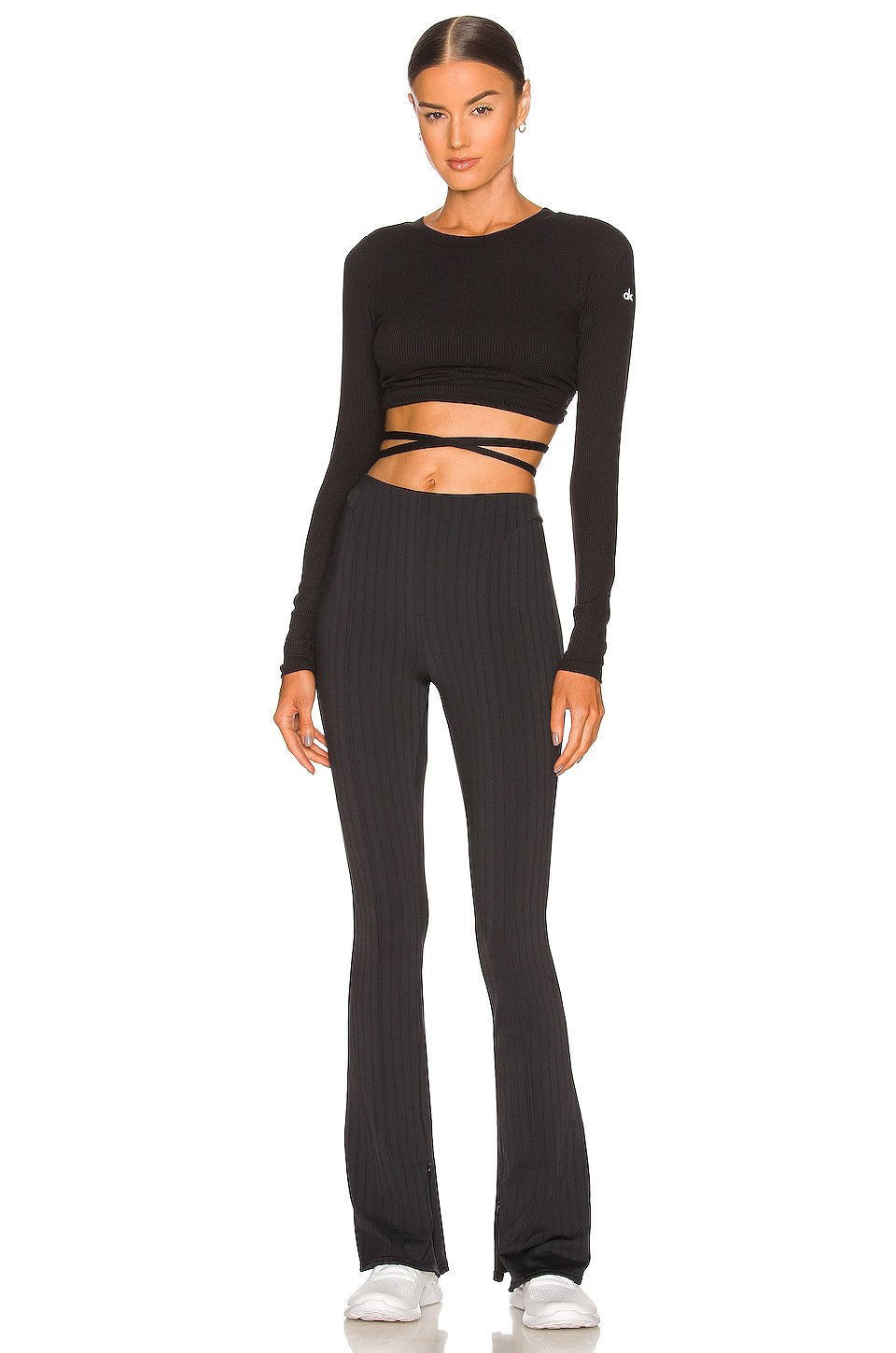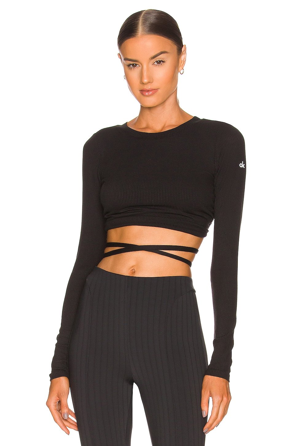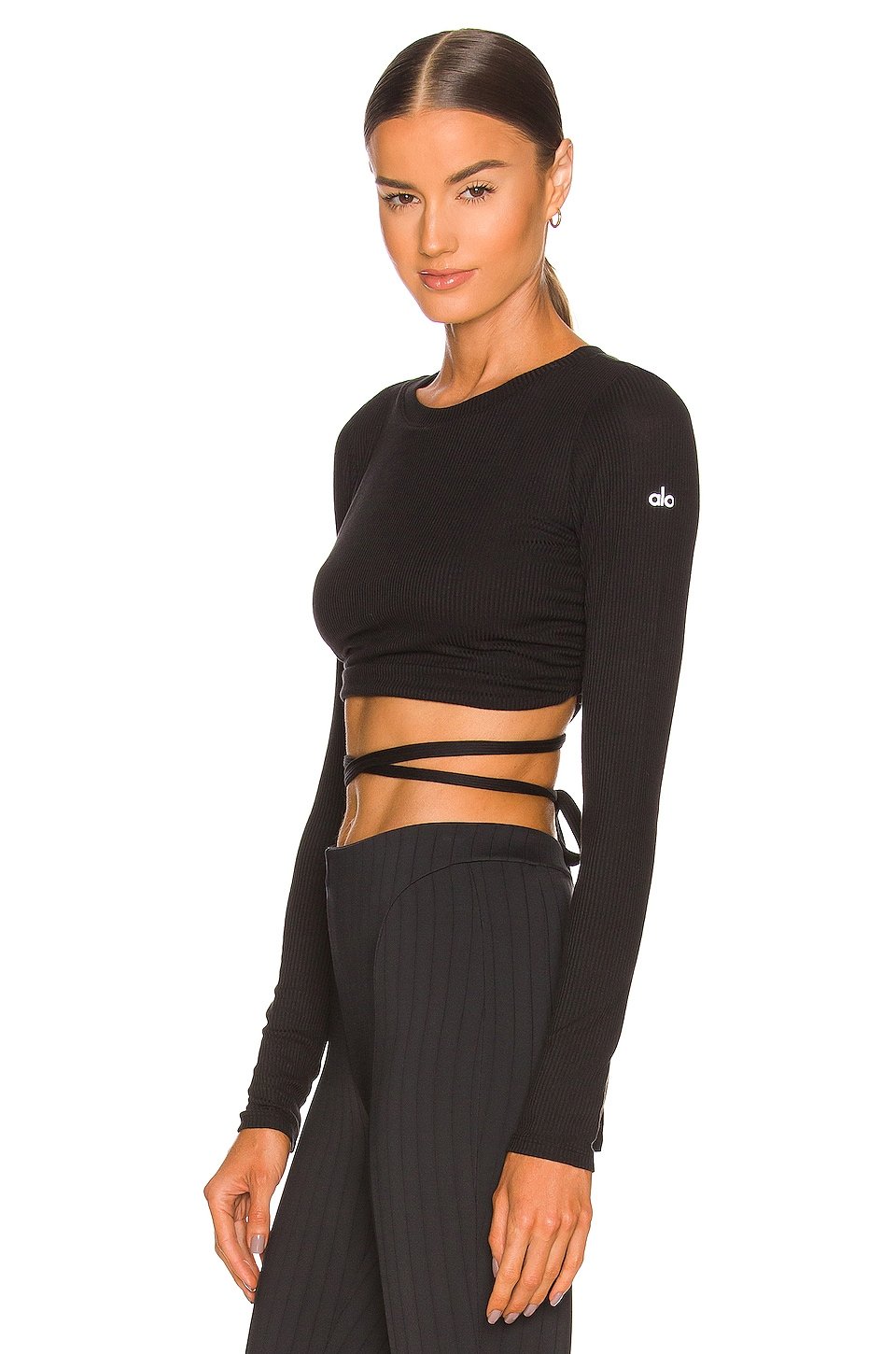 Ruched back cut-out with attached strappy waist tie closure