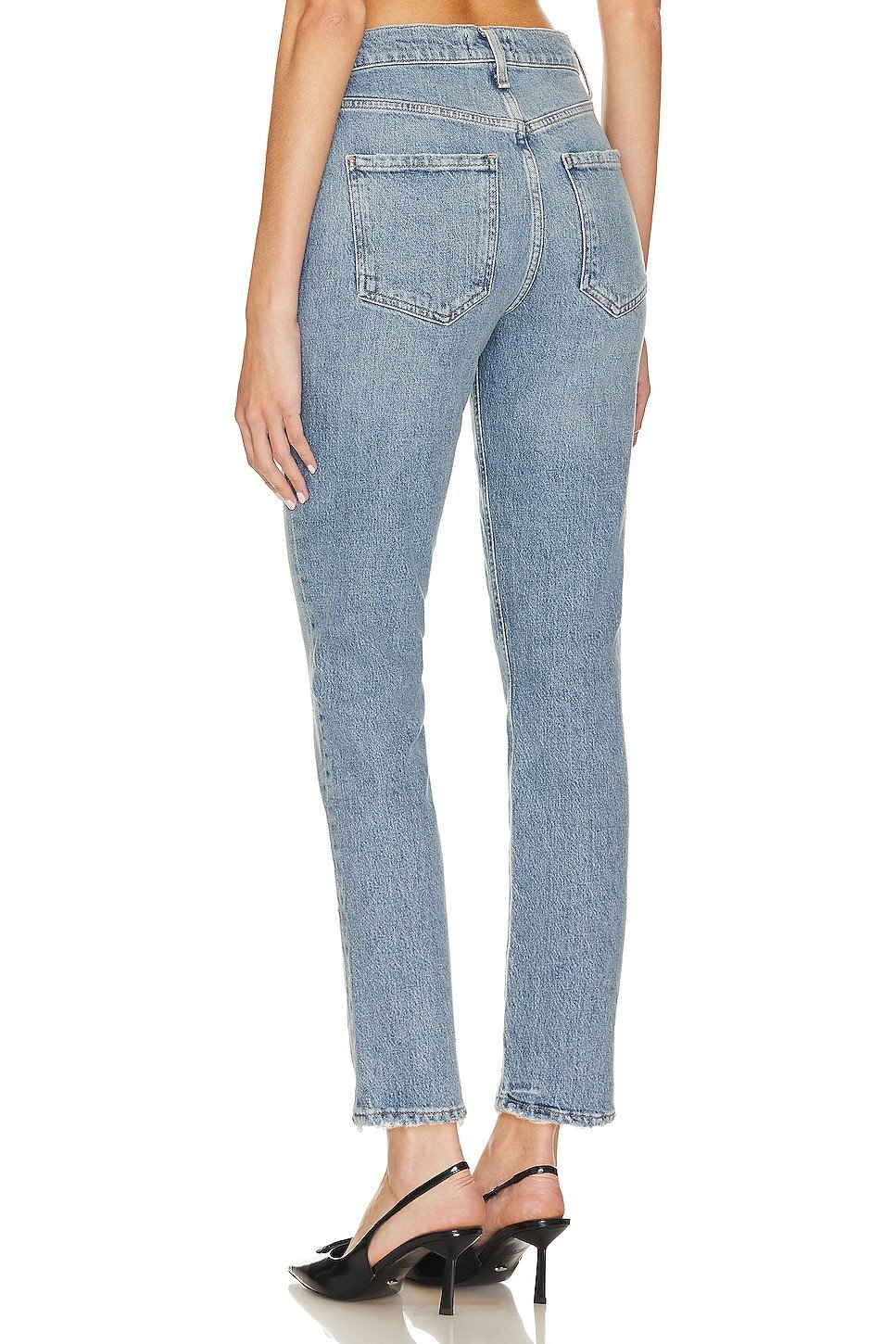 Elevate your daily style with AGOLDEs Riley Long High Rise Straight jeans in Quiver. Button fly, distressed trim, and a slim fit make these your go-to everyday jeans.