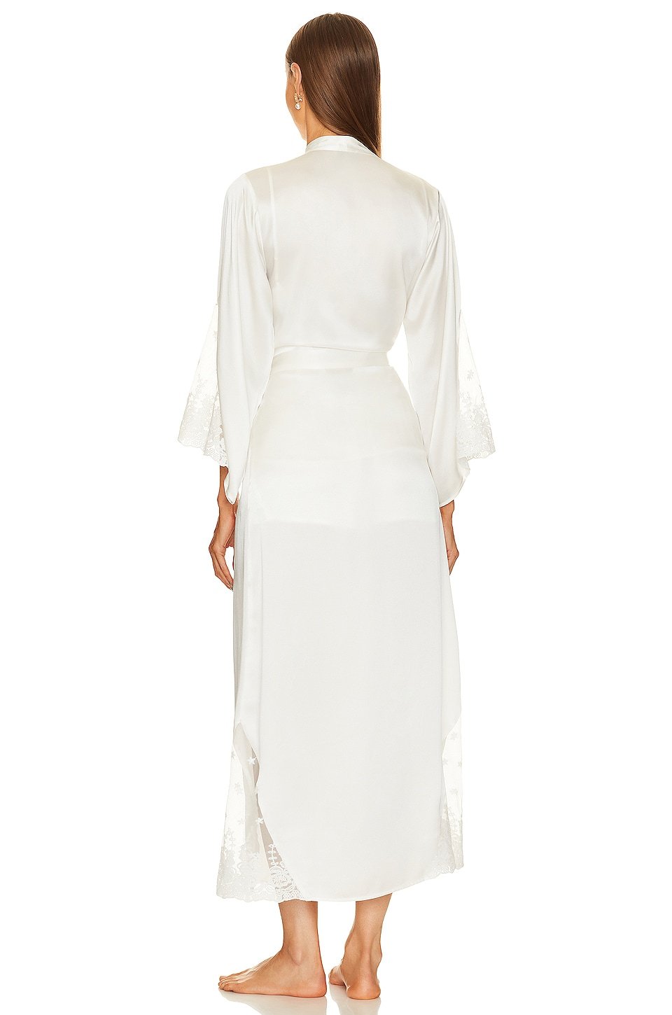 Sheer lace panels at sleeves and hem