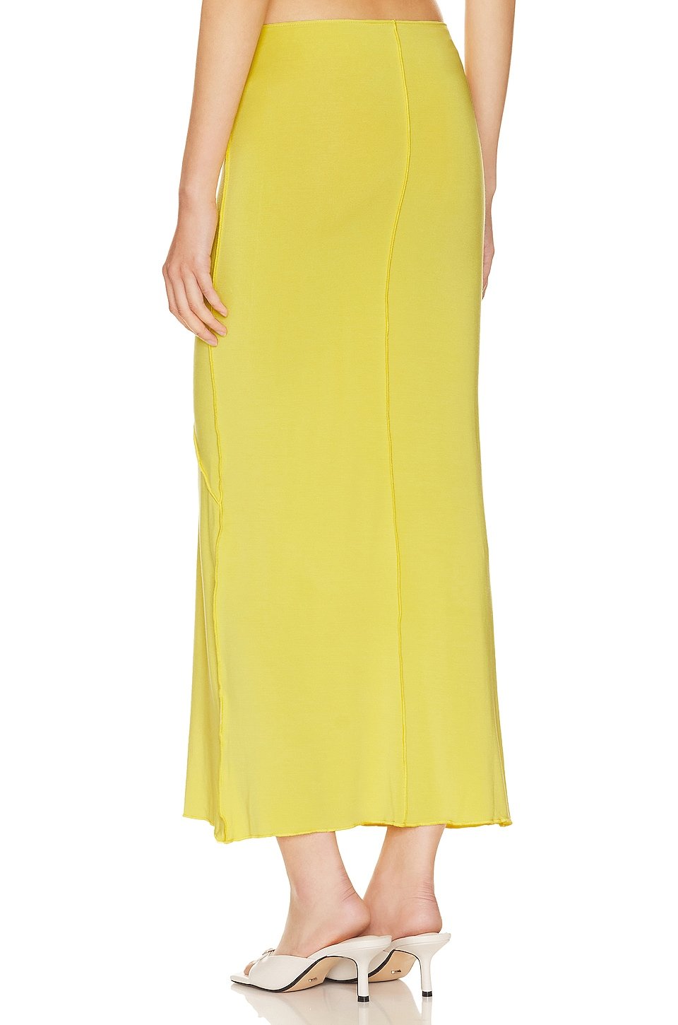 Exposed asymmetric seam detail at front and back