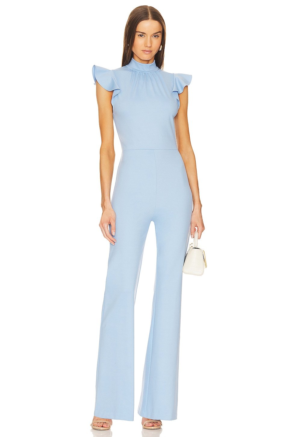 Mockneck styling with ruffled cap sleeves
